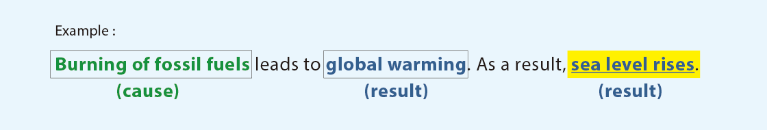 Some expressions (including verbs, nouns, adverbs and conjunctions) help to show cause-and-effect relationships within and across paragraphs, examples of which are provided in the table: