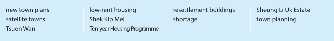 Fill in the timeline about the development of public housing in Hong Kong with the words or phrases from the box below. Each word/phrase can be used ONCE only.