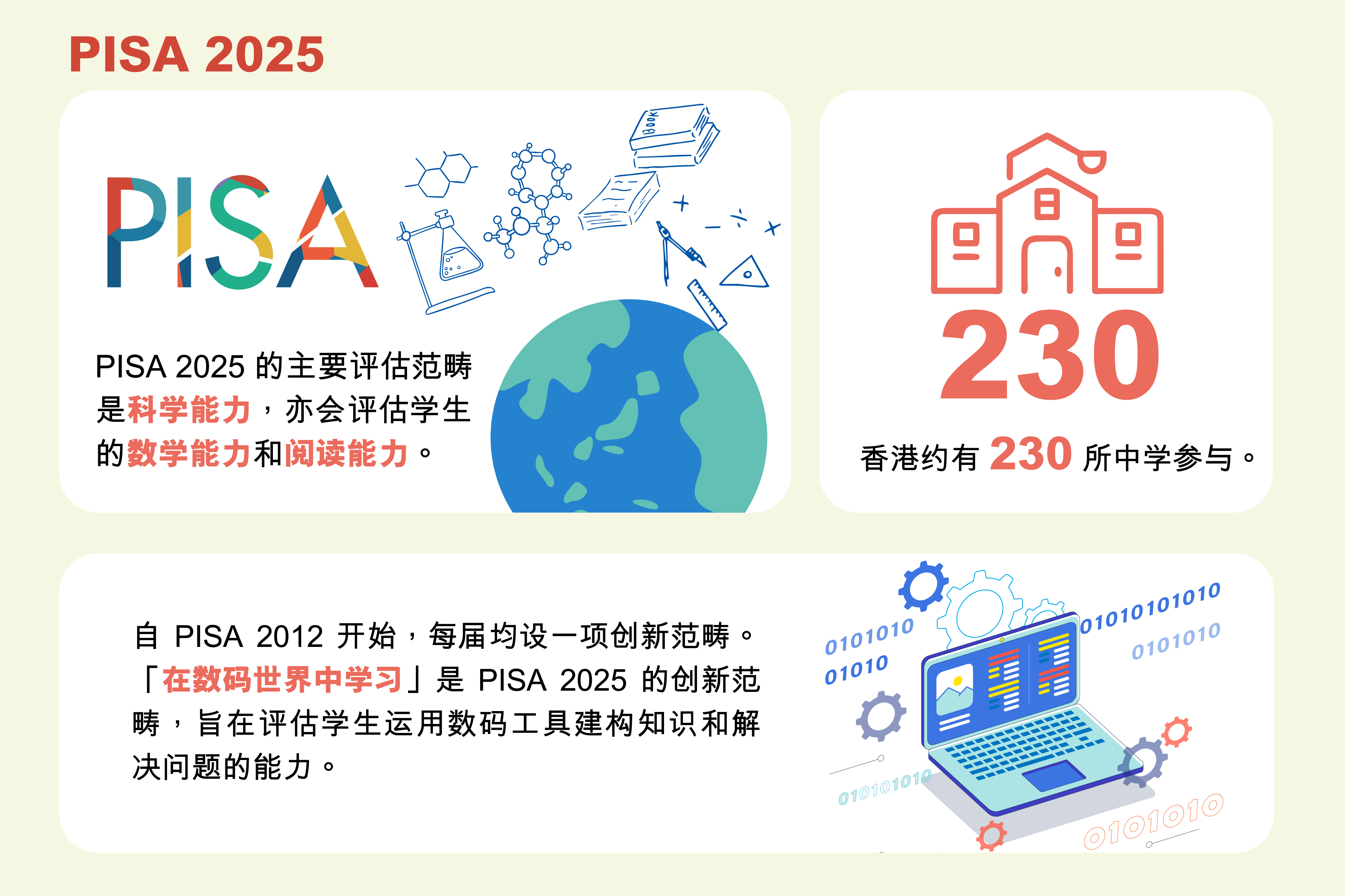 学生能力国际评估计划(PISA)由经济合作与发展组织策划,目的是评估 15岁学生的数学、科学和母语阅读能力,收集影响他们学习因素的数据,以及比较各参与国家或经济体系的教育成效。