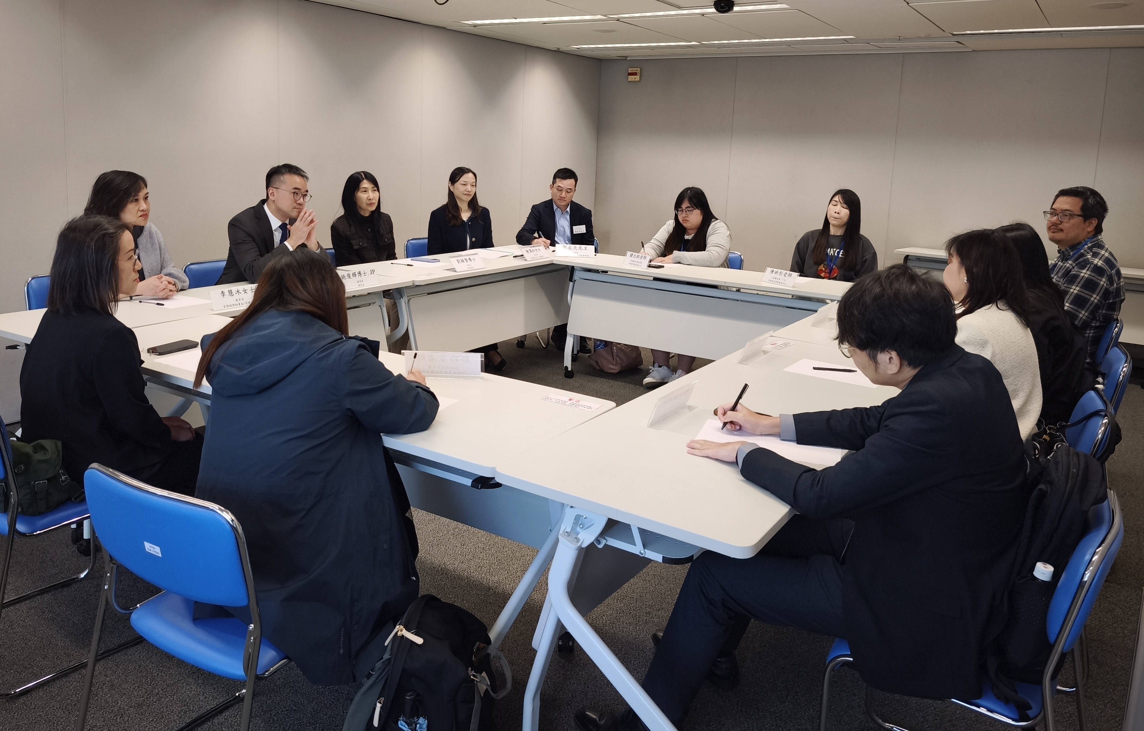 教育局副局長兼數字教育策略發展督導委員會主席施俊輝博士與特殊教育需要統籌主任交流運用人工智能照顧有特殊教育需要學生的經驗。