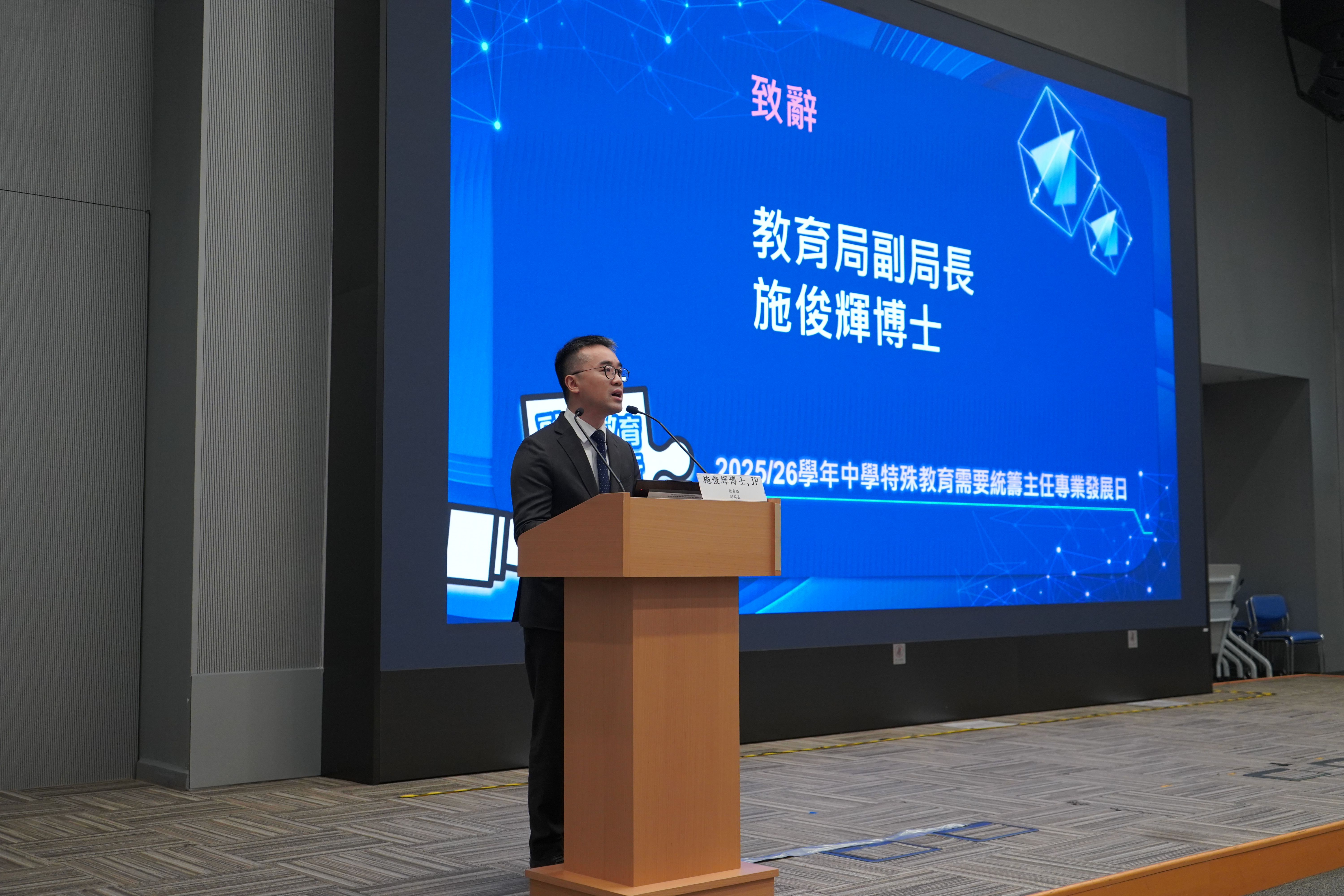 教育局副局長兼數字教育策略發展督導委員會主席施俊輝博士參與「中學特殊教育需要統籌主任專業發展日」。
